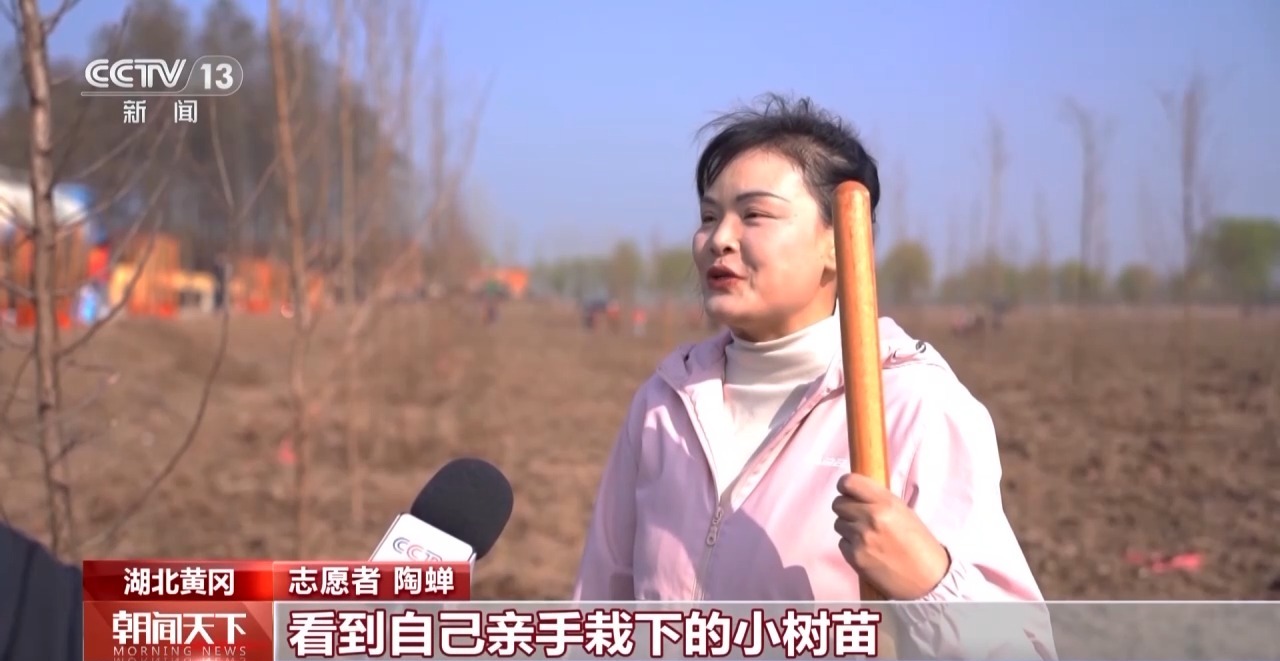 志愿者 陶蝉:看到自己亲手栽下的小树苗能够立在江边,心里特别有成就感,希望它能够好好长大,根系再扎深一点。
