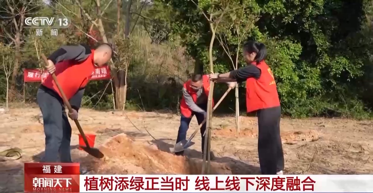 在福建漳州南靖县,志愿者们趁着晴好天气植树增绿。近年来,南靖县不断拓展义务植树尽责形式,推动线上预约、网络捐资与线下体验深度融合,打造出集多种尽责方式于一体的义务植树基地。